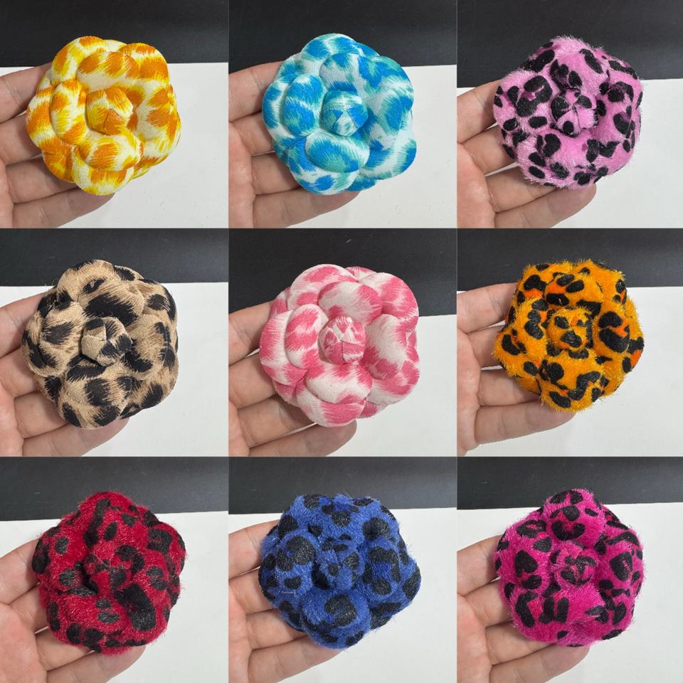Nouveau 6.6cm haut de gamme imprimé léopard vison cheveux camélia accessoire broche épingles épingle à cheveux