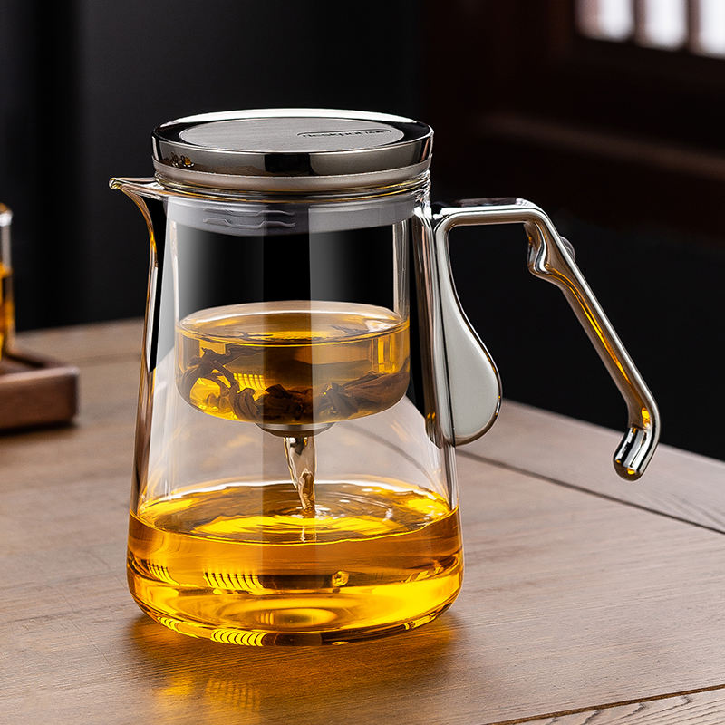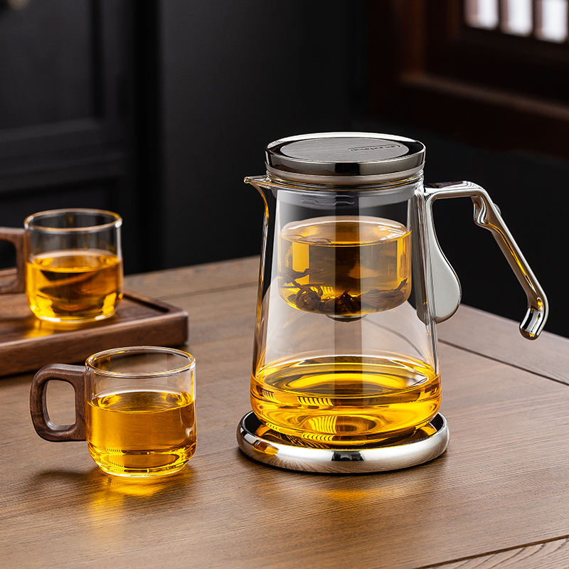 Nouvelle théière en verre magnétique de 600ml avec filtre en un clic pour la séparation du thé Ensemble de 350ml pour le brassage de thé de bureau pour les hôtels