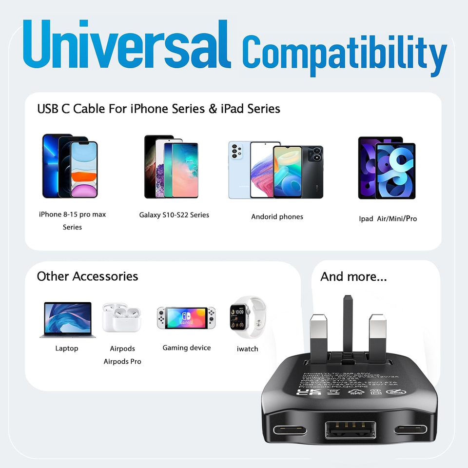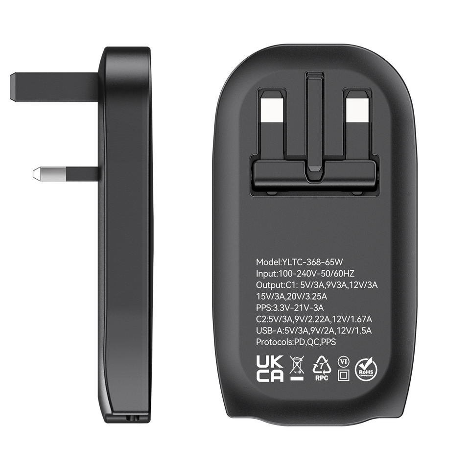 Nouveau chargeur USB 65W pour l'Arabie Saoudite, charge rapide, compatible avec plusieurs appareils, noir