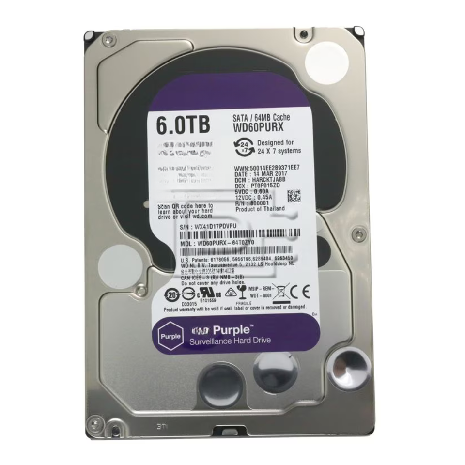 Nouveau disque dur interne SATA violet de 6 To, 3,5 pouces, WD60PURX, 5400 tr/min, 64 Mo de cache, stockage haute capacité pour ordinateur de bureau, DVR, NVR, serveur