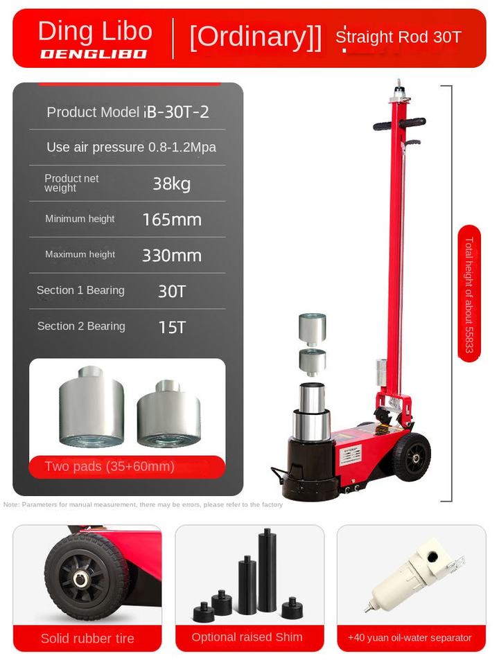Nouveau Vérin Pneumatique Horizontal 80 Tonnes 30 Tonnes 50 Tonnes 100 Tonnes, Outil de Réparation Automobile Hydraulique Spécial Pression d'Air, Acier Métallique