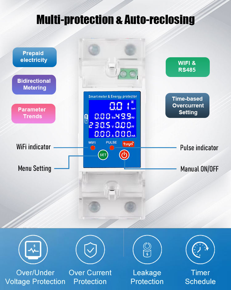 Nouveau 80A Tuya WIFI AC80-300V intelligent sur sous-tension protecteur interrupteur énergie kWh mètre pour la maison Holtel