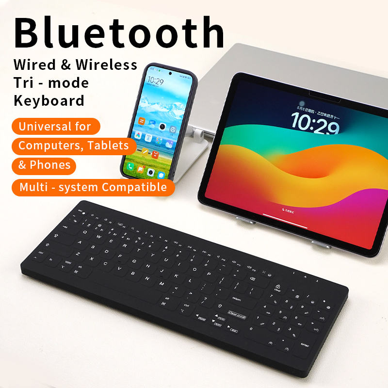 Nouveau clavier portable silencieux à membrane 96 touches, étanche, trois modes, USB Type-C