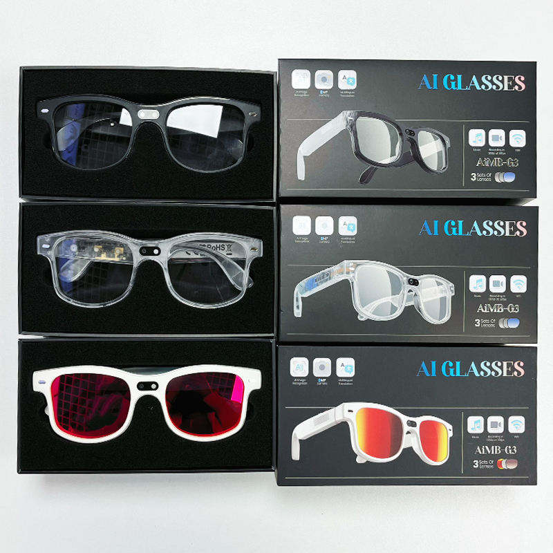Nouvelles lunettes intelligentes AI AIMB-G3 avec caméra 1080P Full HD, étanches IP43, anti-tremblement, audio, monture PC, prennent des photos et des vidéos d'objets