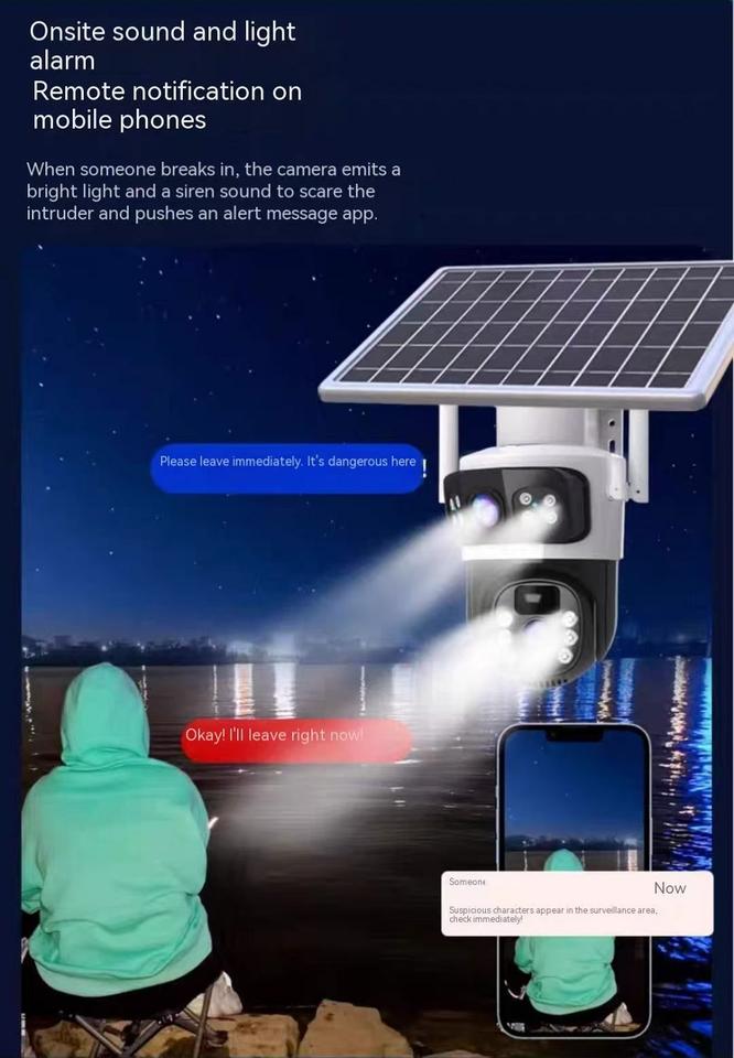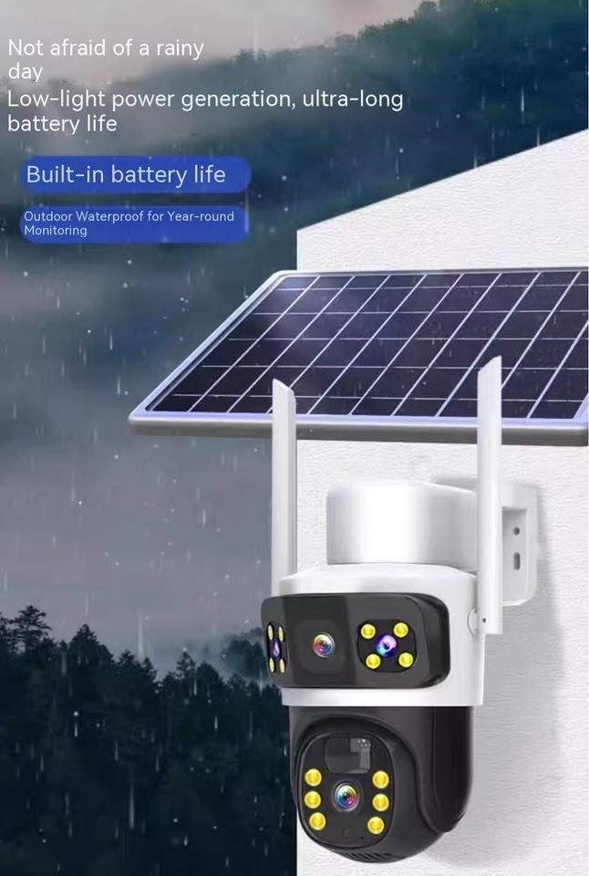 Nouvelle caméra solaire 4G à double objectif AOV pour la Thaïlande, l'Indonésie, l'Asie du Sud, carte SIM, enregistrement 24 heures, caméra de sécurité alimentée par énergie solaire