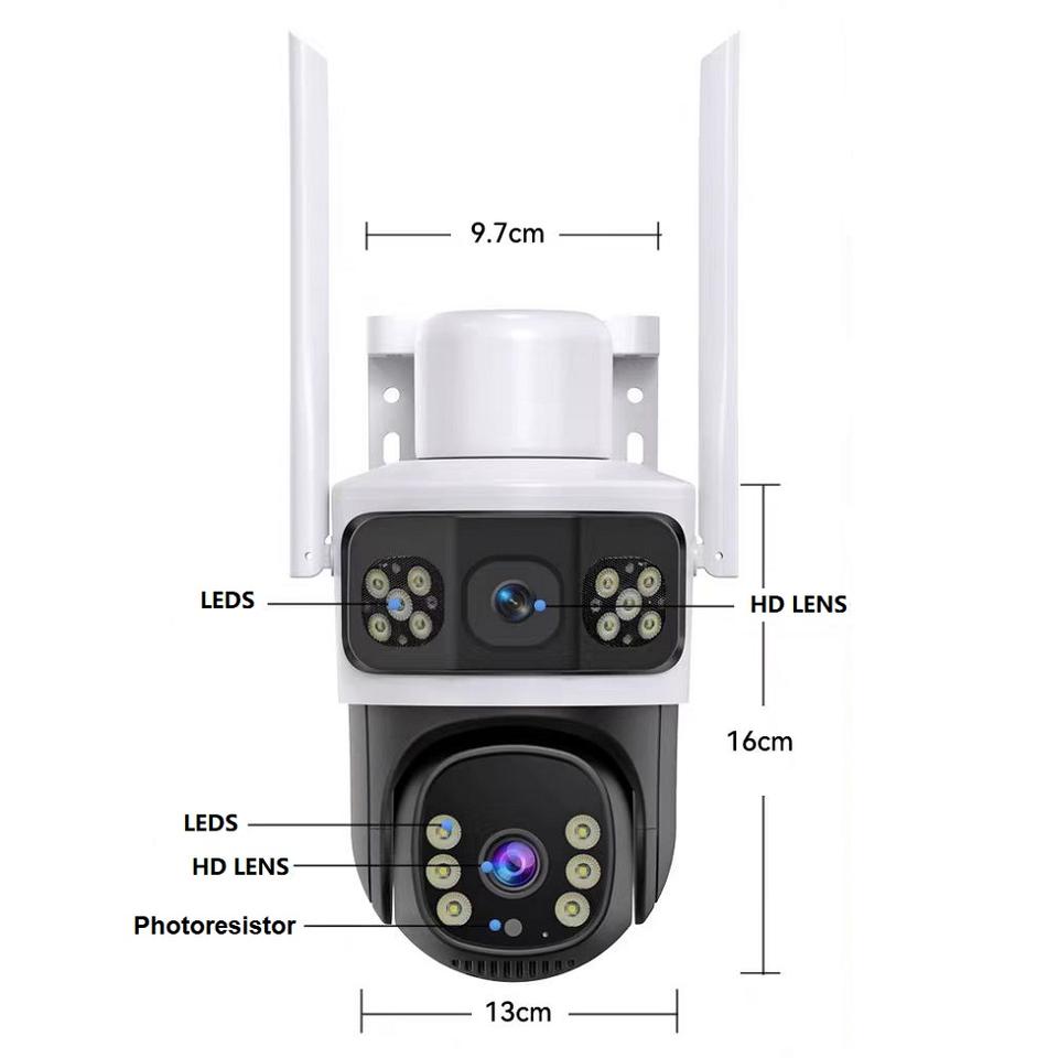 Built-in Sirène, Vision nocturne, Audio bidirectionnel, Détection de mouvement, À l'épreuve du vandalisme, Faible Puissance, L'homme De Suivi De Mouvement, Détection sonore, PAN-TILT, Imperméabilisez/protégez contre les intempéries, Audio à sens unique