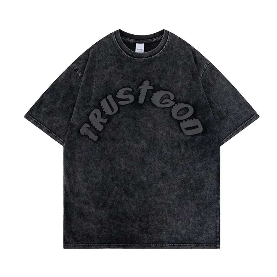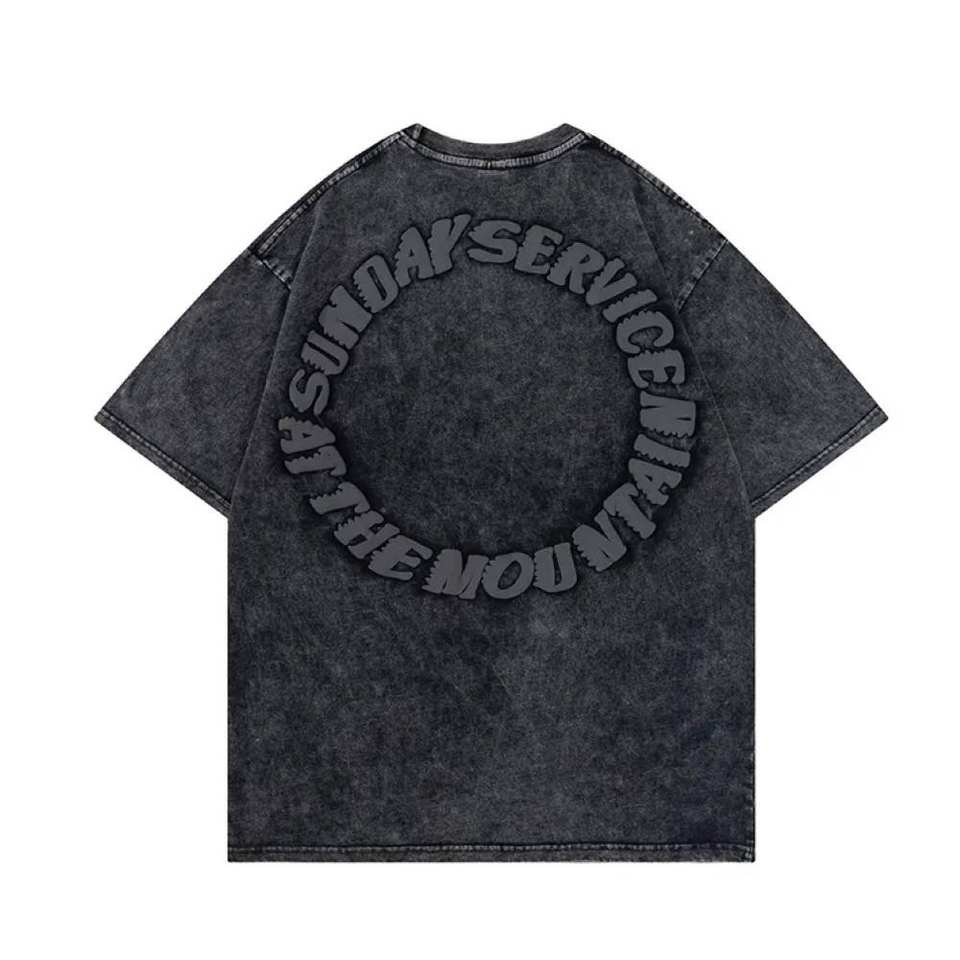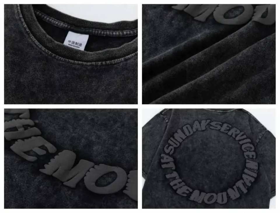 Nouveau lavage à l'acide hommes bouffée impression t-shirt 100% coton Jersey goutte épaule 220gsm vêtements fabrication tissu doux hommes t-shirt