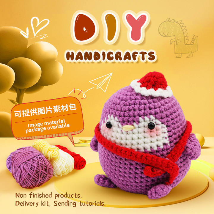 Nouveau kit de crochet en fibre acrylique, petit pingouin violet, ornement cadeau, pendentif, poupée à tricoter, ensemble de bricolage pour débutants