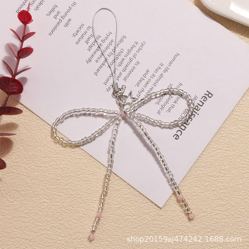 Nouveau porte-clés en acrylique moderne et minimaliste avec perle nœud de riz, pendentif créatif personnalisé pour chaîne de téléphone et décoration d'étui d'écouteurs