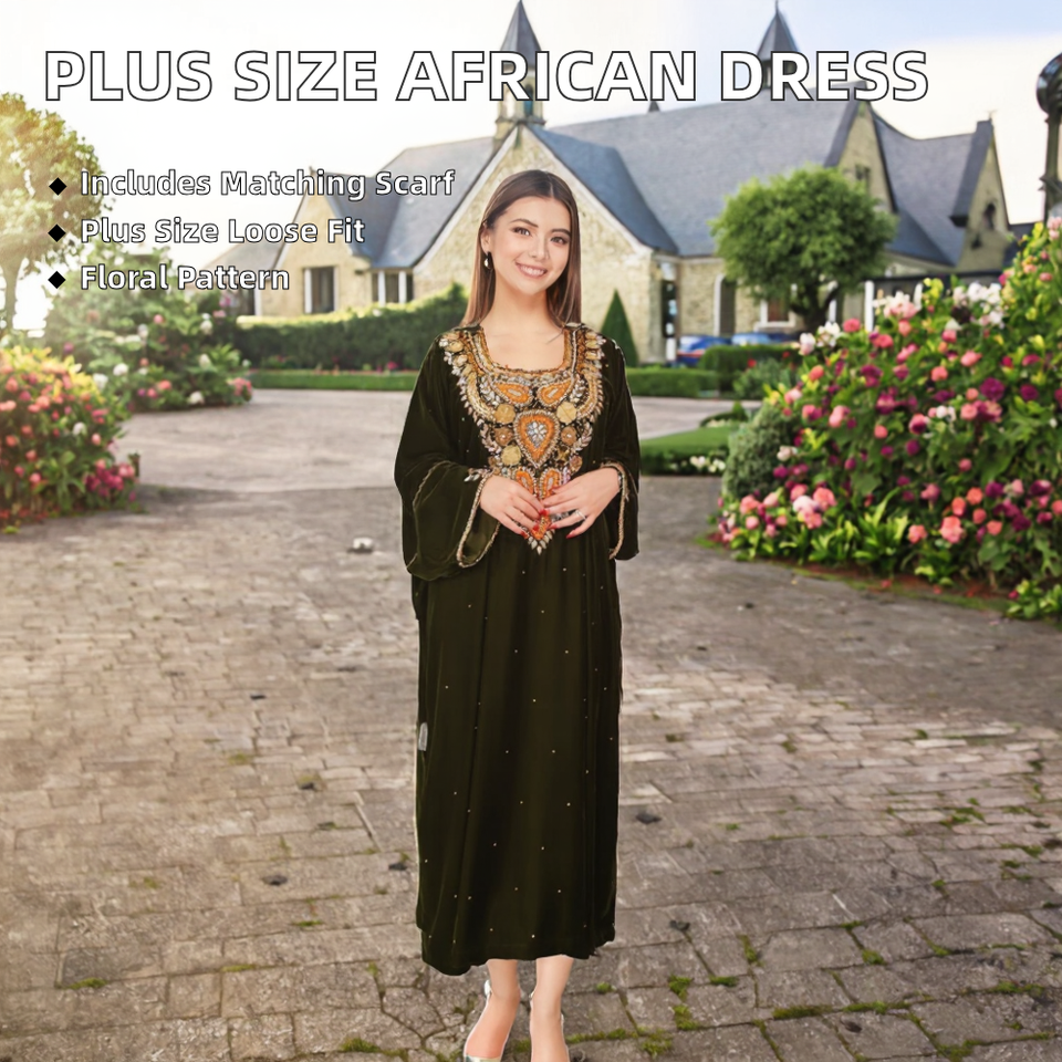Nouvelle Robe d'été Africaine Élégante et Modeste Grande Taille à Motifs Floraux avec Foulard, Ensemble Deux Pièces Respirant Ample Coupe A-Line pour Femme K0437