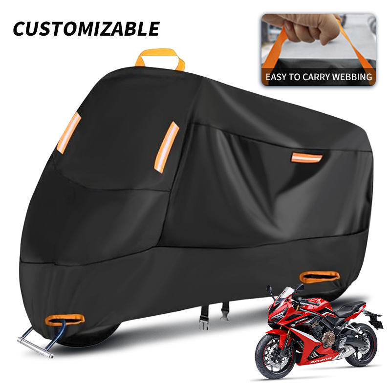 Nouvelle couverture de moto tout temps 210D/420D Protection contre la poussière UV intérieure/extérieure avec pare-soleil et sac étanche emballé