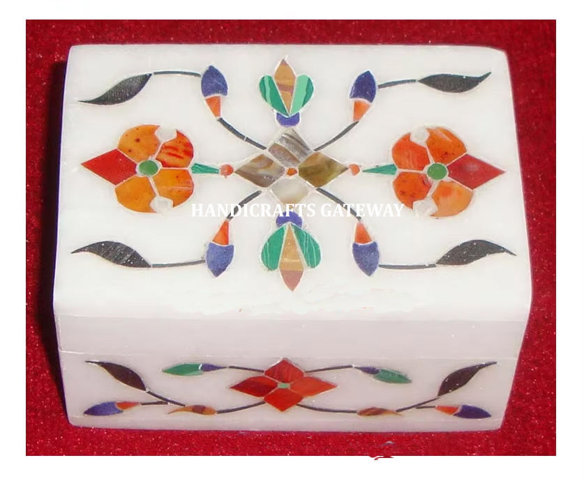 Nouvelle boîte à bijoux personnalisée en marbre blanc pur, de forme rectangulaire, avec un magnifique incrustation florale, faite à la main, pour la maison
