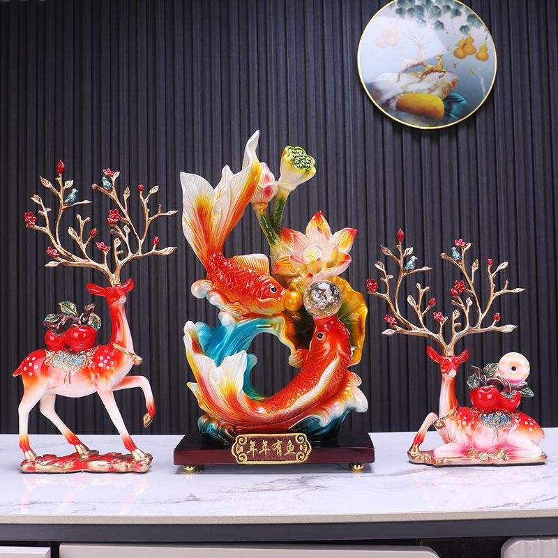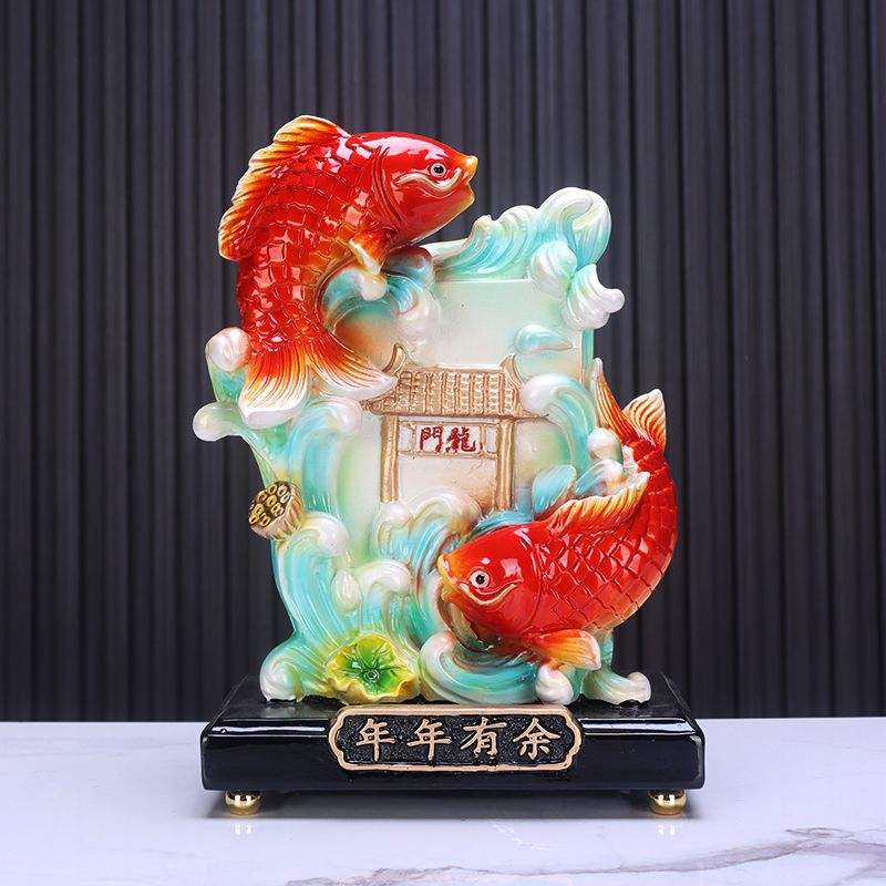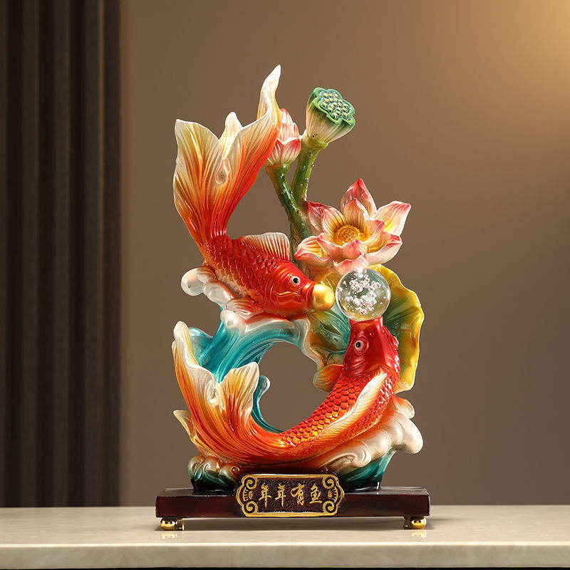 New Annual Surplus Lucky Koi Epoxy Resin Artistic Figurine for Living Room Wine & TV Cabinets Decorative Gifts-Folk Art Style