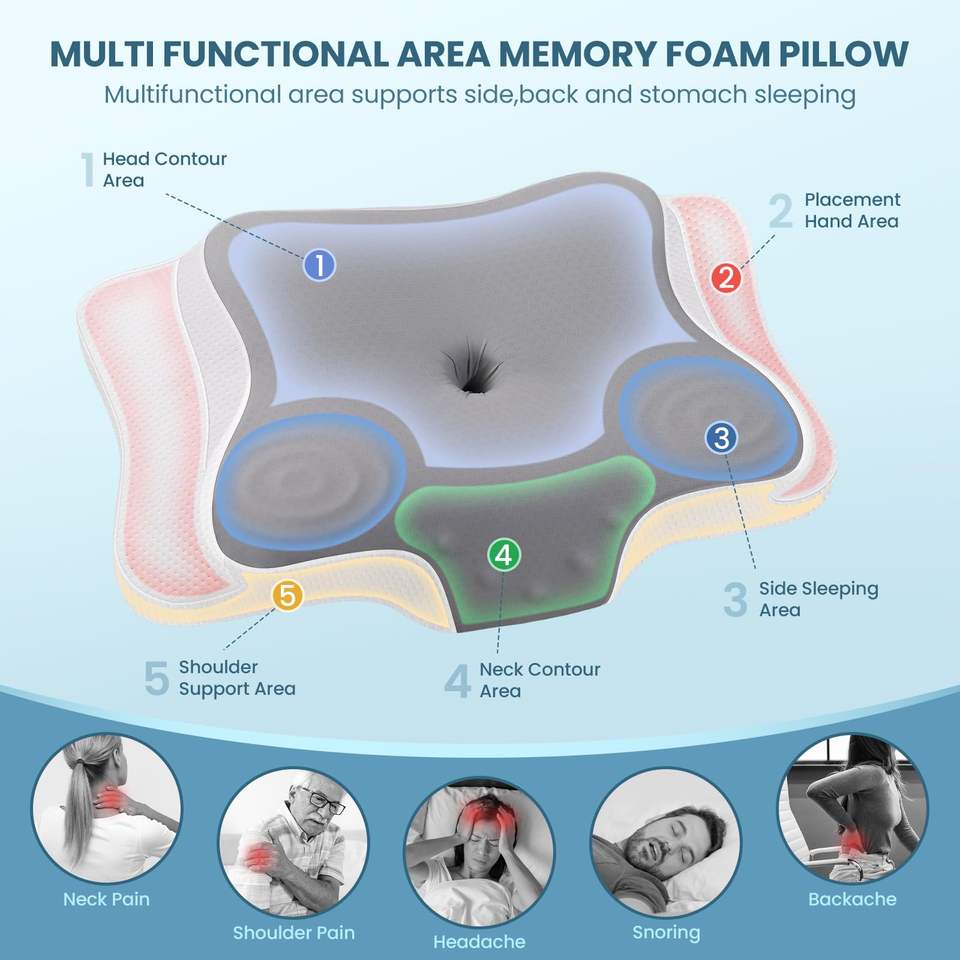 Mémoire, Anti-apnée, Anti-Ronflement, Massage, Thérapie, Anti-traction, Anti-bouloche, non toxique, Non jetable, Perméable à l'air, Anti-acarien, Anti-bactérien, RefroidissementDispositif