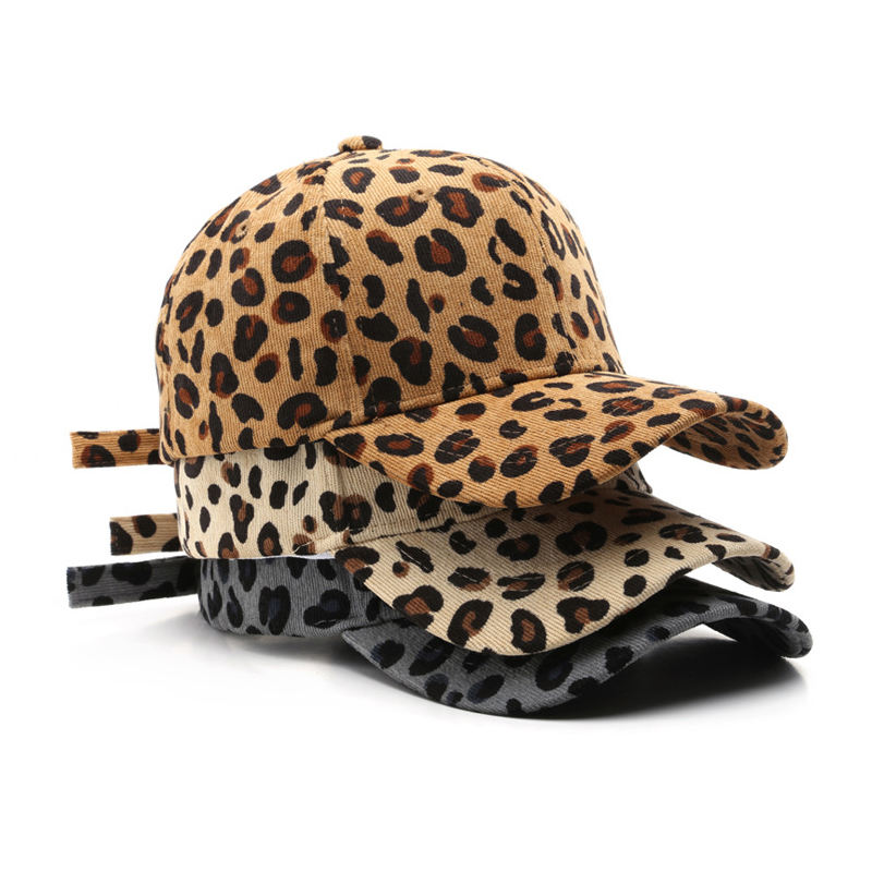 New Arrival 100% Corduroy Curved Brim Plain Blank Baseball Caps Unisex Custom Logo Leopard Printing 6 Panel Cotton Hats