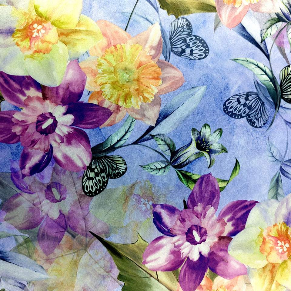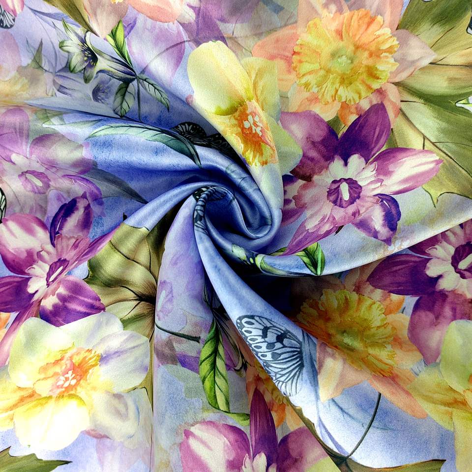 100% Polyester Soft Silk Satin Multi-Color Floral
