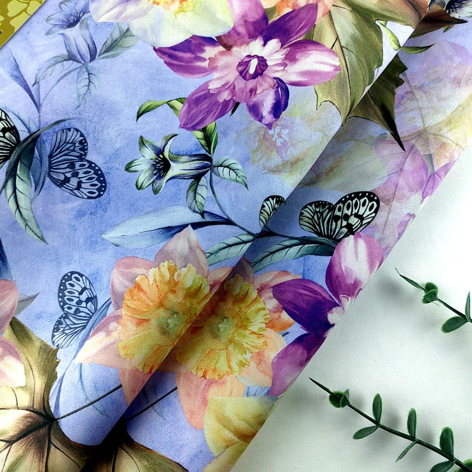 1000 Meters for 100% Polyester Satin Multi-Color Floral Print