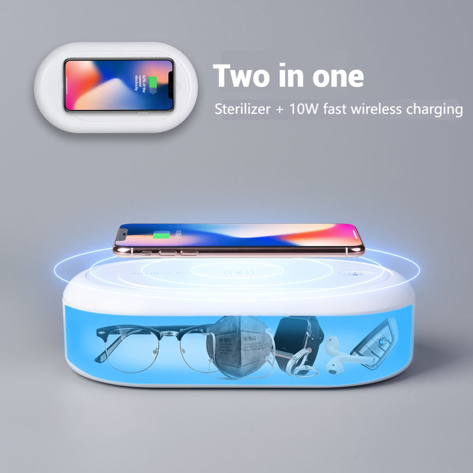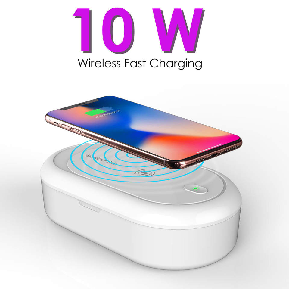 Nouvelle arrivée 10W charge rapide sans fil boîtier de désinfection UV chargeur intelligent multifonction avec une haute efficacité et des avantages pour la santé