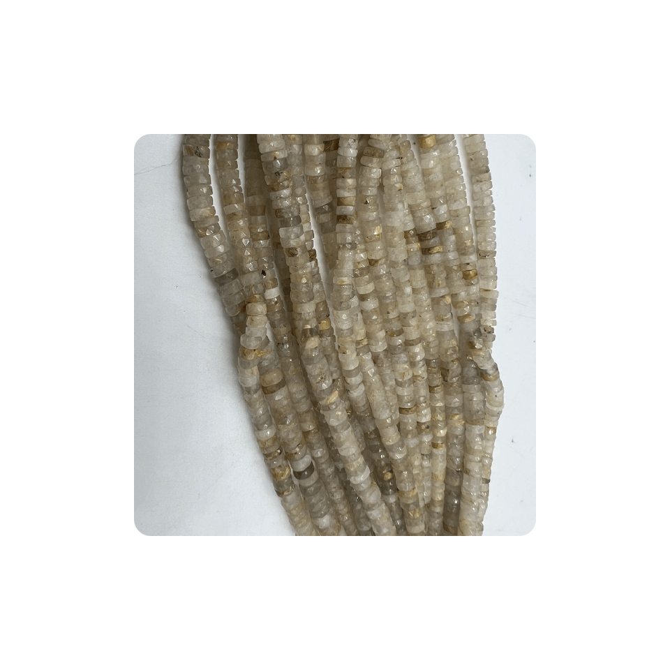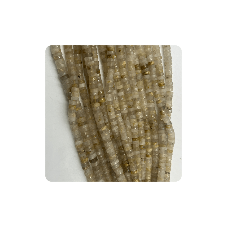 Nouveauté : Perles de pierres précieuses en quartz rutilé rose doré naturel de 14 pouces, facettées, forme Heishi, taille 8-10 mm