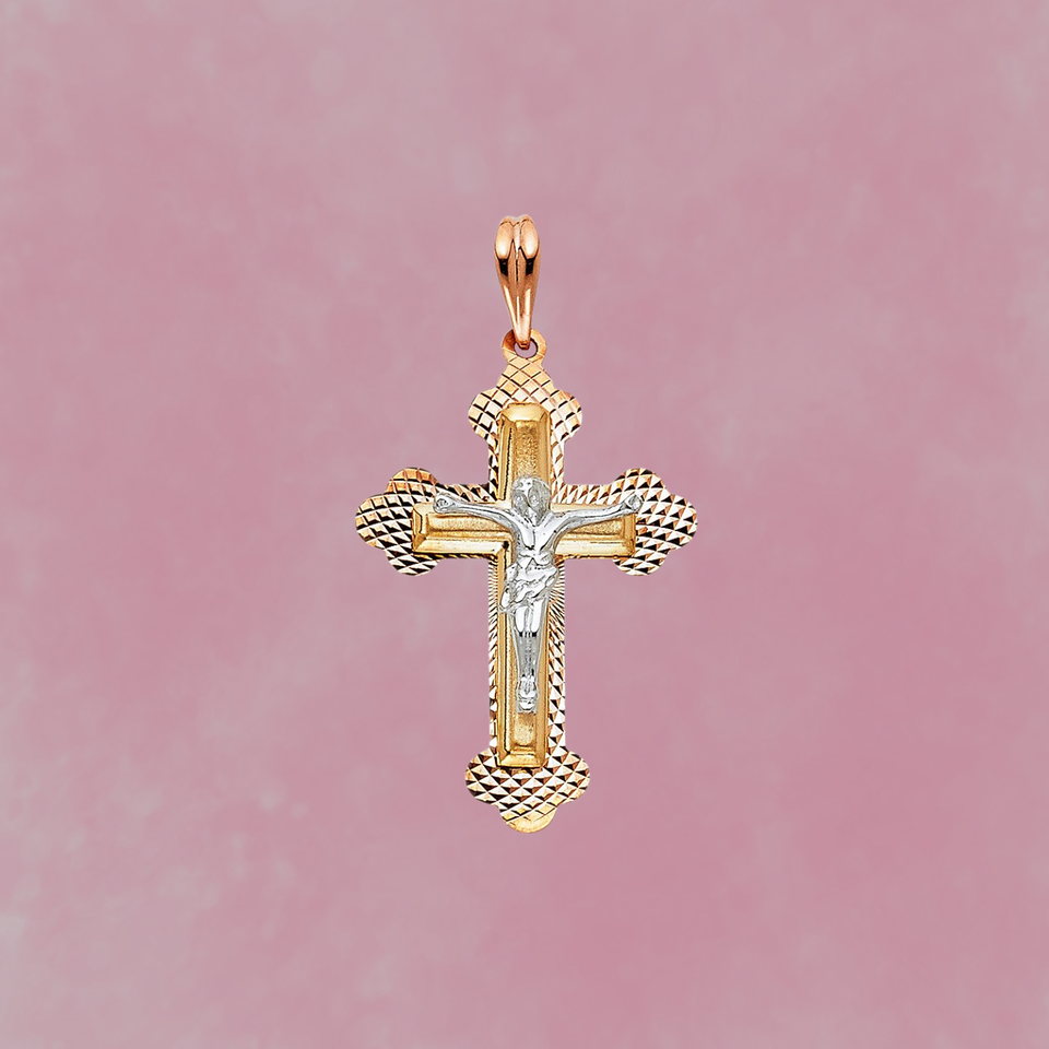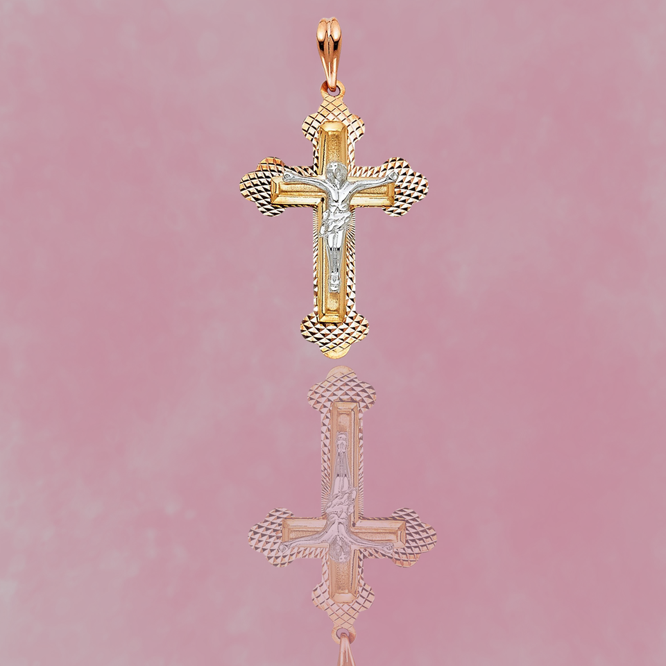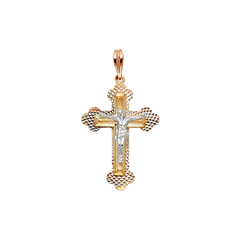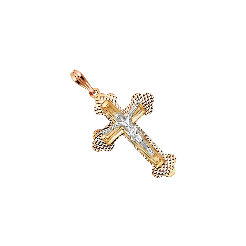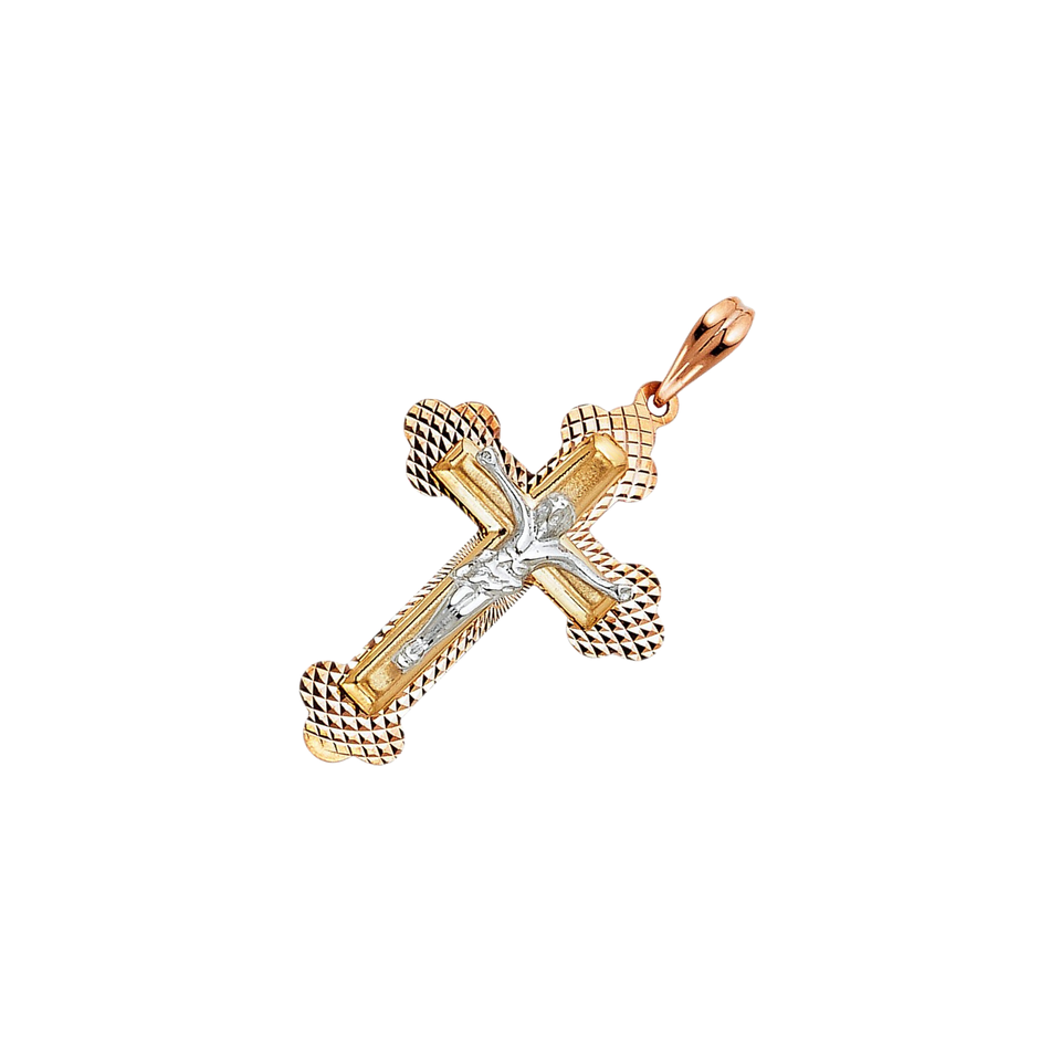 Nouveauté 14K tricolore plaqué or Christian Crucifix pendentif diamant incrusté jésus croix breloque mode pendentifs breloques