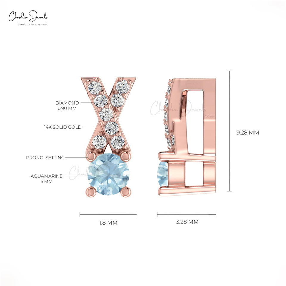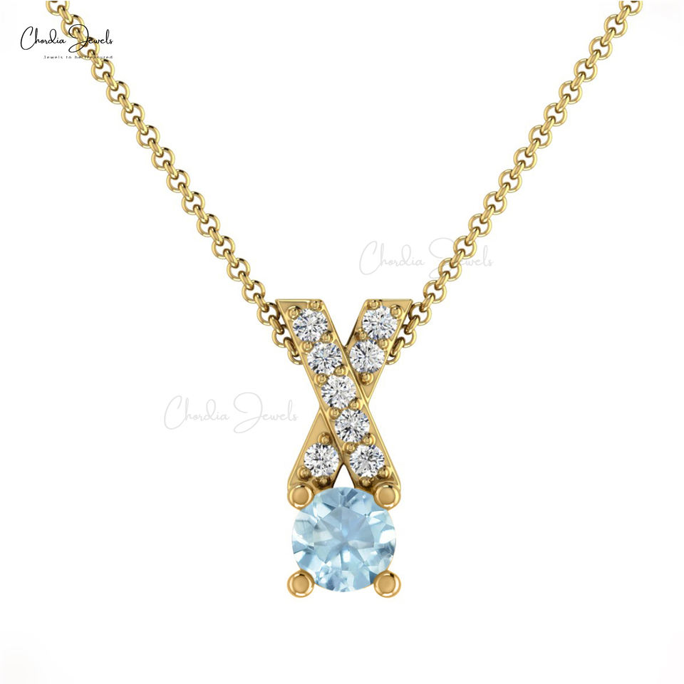 Nouvelle arrivée or massif 14k pavé ensemble diamant croix pendentif collier grossiste pendentifs religieux fins aigue-marine naturelle