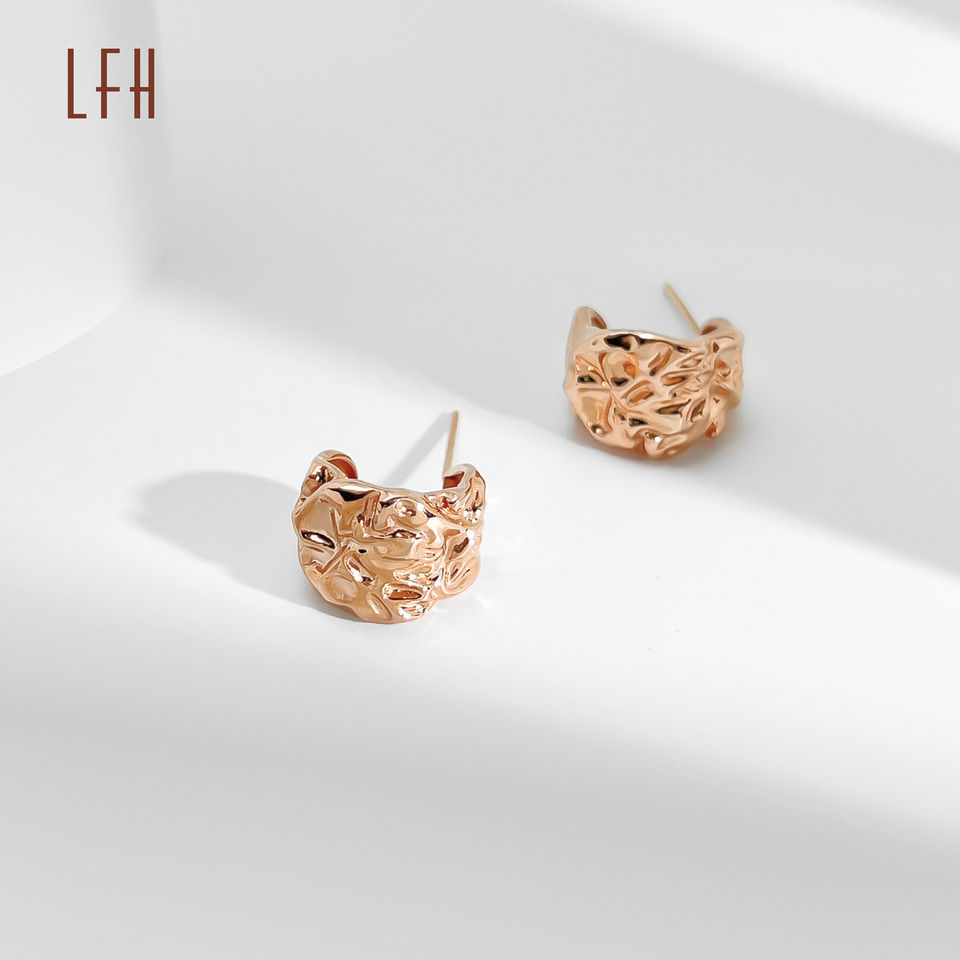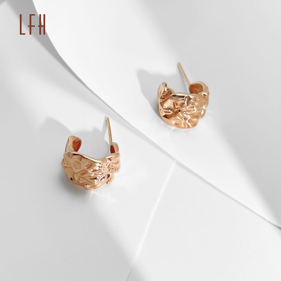 Nouveauté Boucles d'oreilles géométriques circulaires en métal véritable en or 18 carats pour femmes, élément texturé, boucles d'oreilles minimalistes en or 18 carats