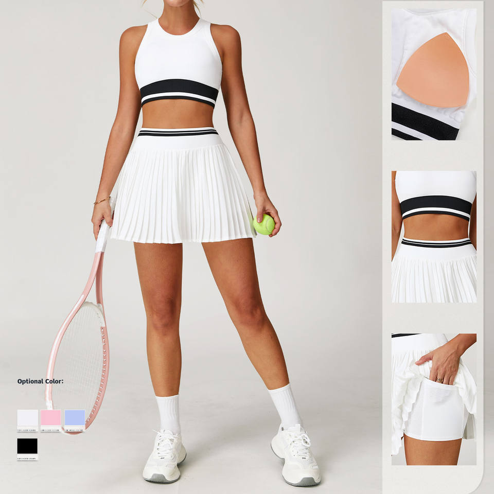 Nouveauté : Ensemble de vêtements de sport pour femme, 2 pièces, jupe avec short, logo personnalisé, ensemble de sport de haute qualité, tenue de gym pour femme