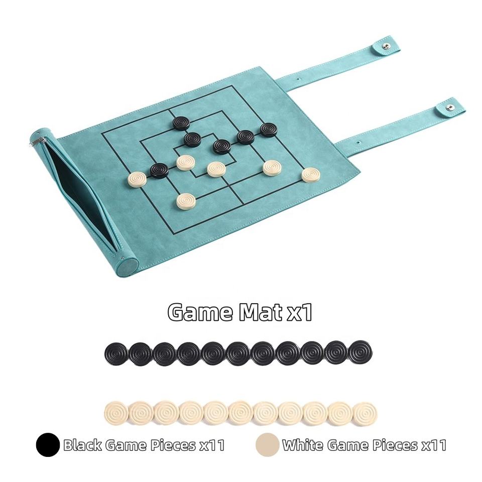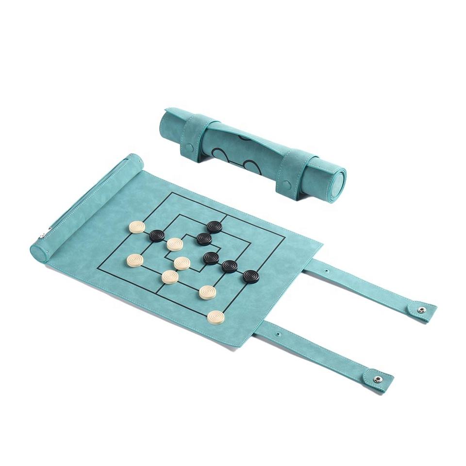 Nouveauté 2 en 1 Nine Men's Morris Jeu de société personnalisé pour enfants Portable PU Leather Chess Roll