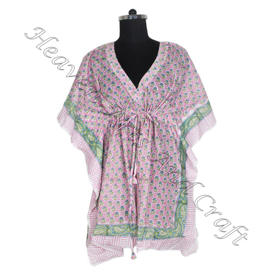 Nouveauté 2024 indien main bloc imprimé caftan Robe KFCS038 Robe d'été Kimono vacances coupe ample Robe vêtements pour femmes