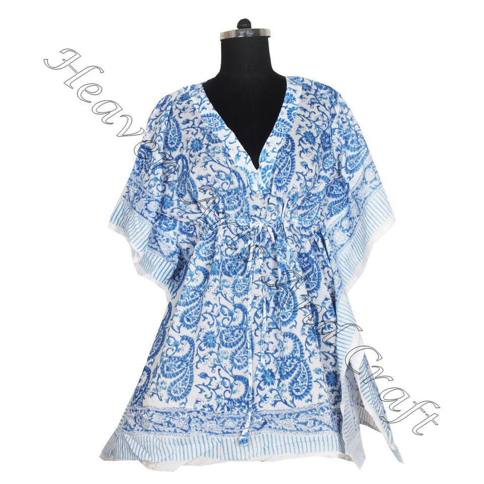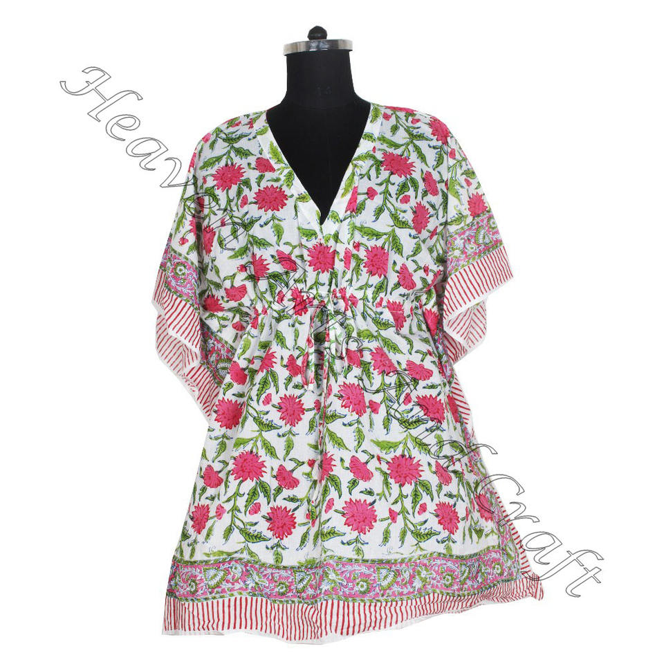 Nouvelle arrivée 2024 indien main bloc imprimé caftan Robe KFCS064 Robe d'été Kimono vacances coupe ample Robe vêtements pour femmes