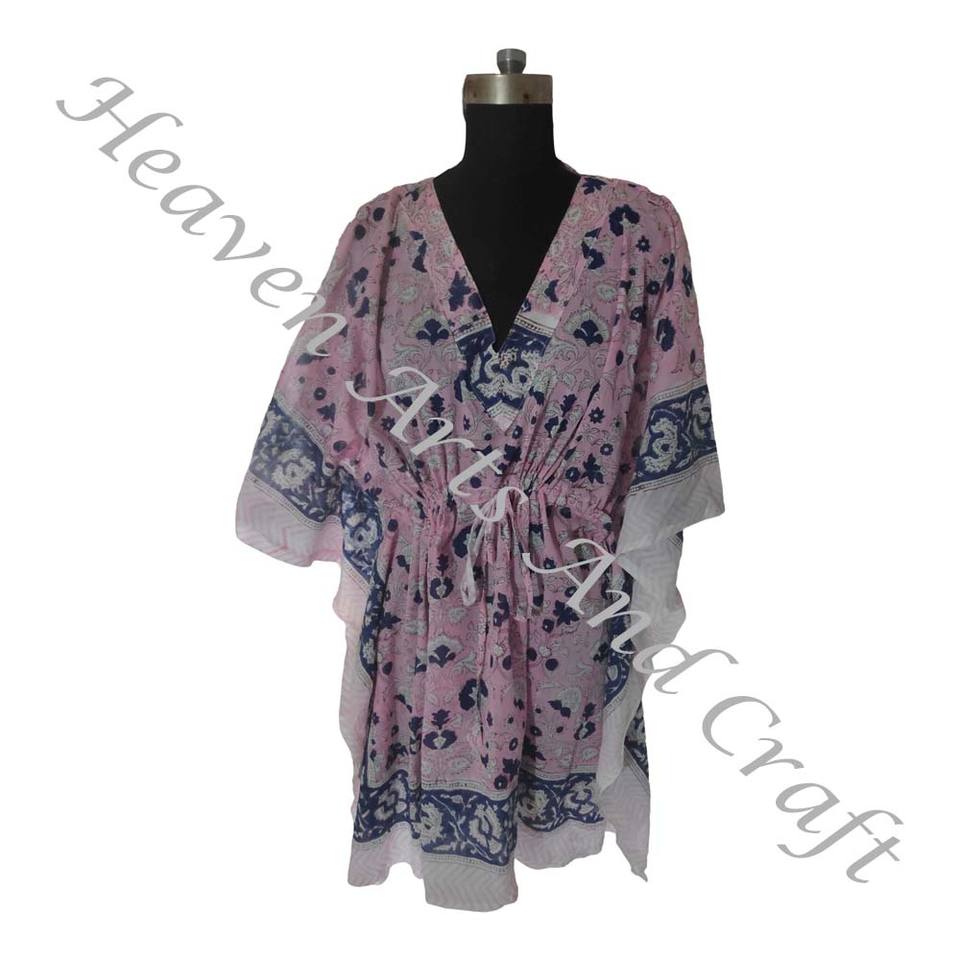 Nouveauté 2024 indien main bloc imprimé caftan Robe KFCS189 Robe d'été Kimono vacances coupe ample Robe vêtements pour femmes