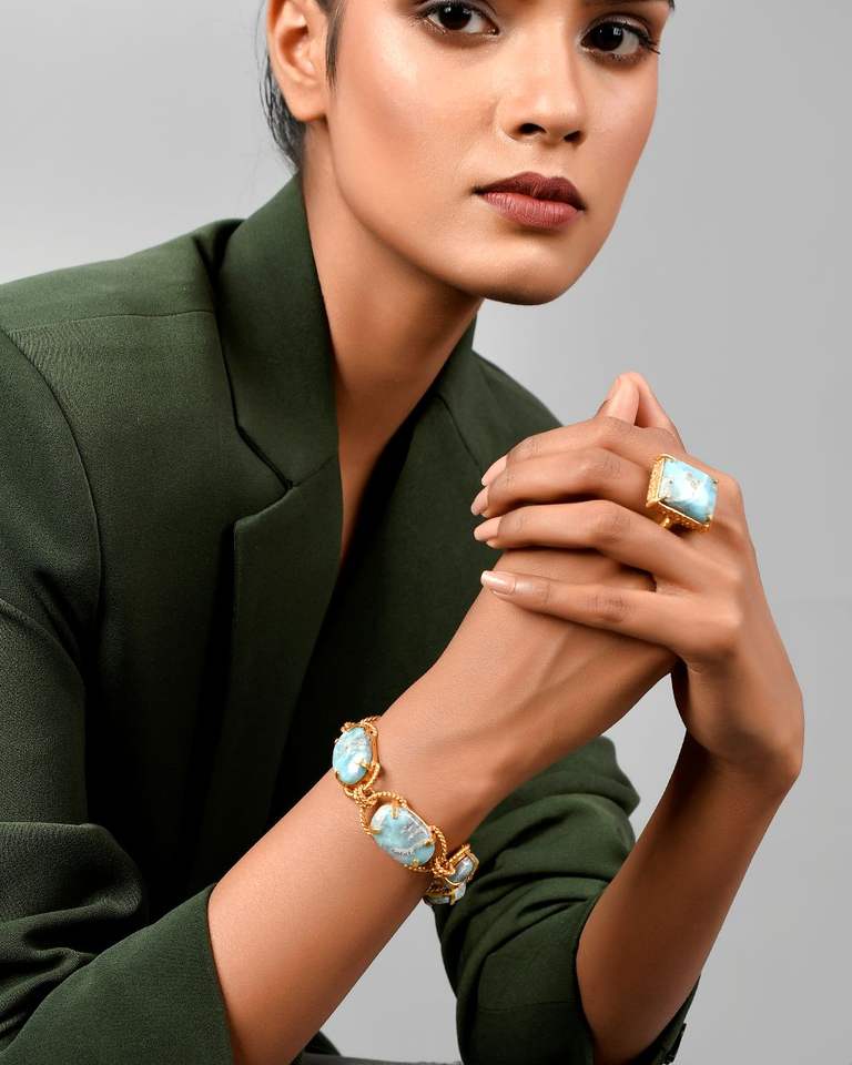 2025 nouveauté fait à la main en laiton Antique plaqué or Larimar pierre Bracelet haute qualité Vintage mode bracelets