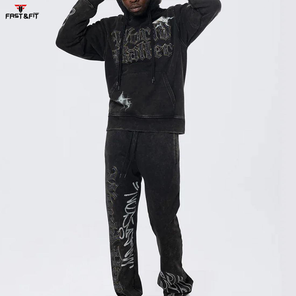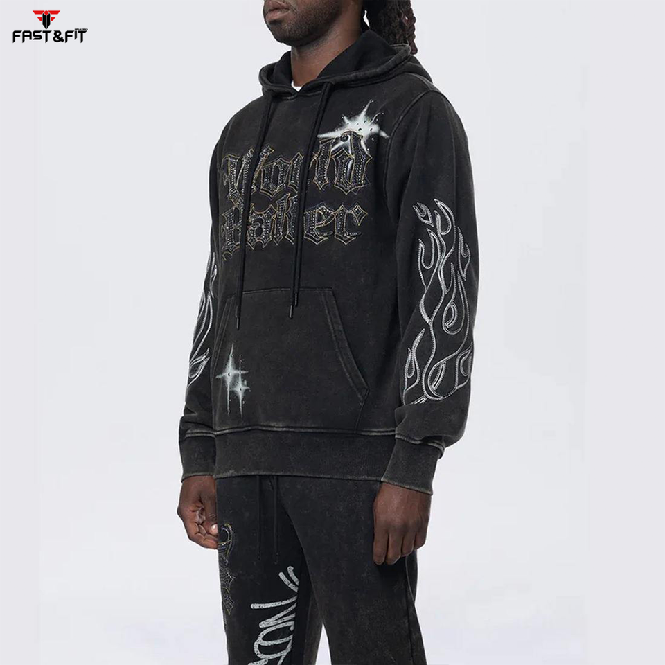 Nouveauté 2025 Sweat à capuche d'hiver personnalisé avec strass pour homme 100% coton polaire délavé thermique Vente en gros Service OEM