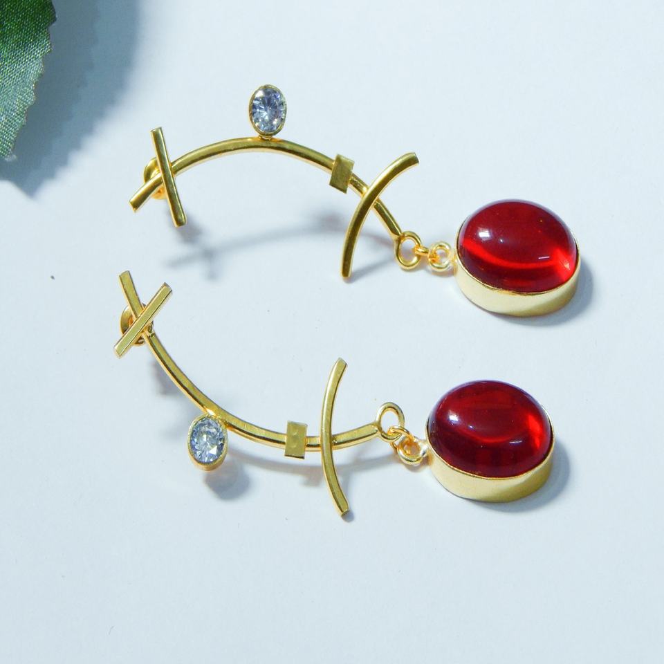 New Arrival 2025 Designer Ear Wire Garnet Quartz Stone Work Earrings Handmade for Women and Girls Wear in Wedding Party, Hldi