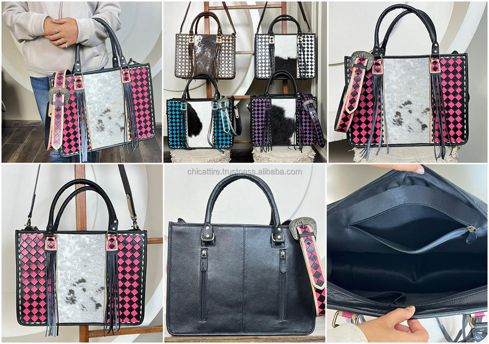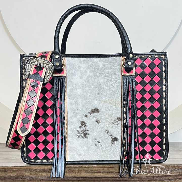 Product name:Hand Tooled Checkered Leather Tote Bags