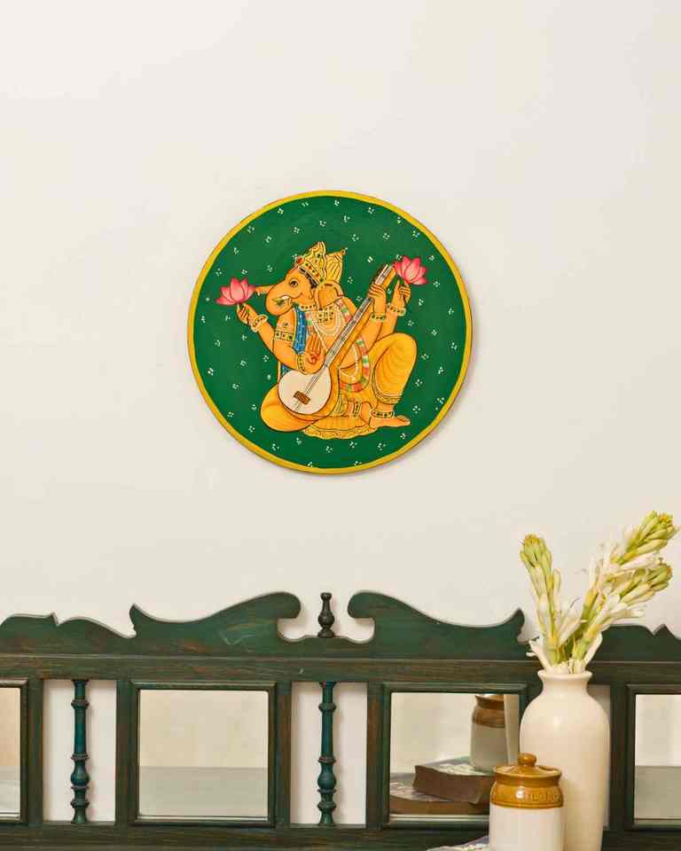 Nouveauté 2025, peinture sur fer Ganesh Ji de couleur orange de designer, avec Vina en main, artisanat en métal pour la décoration murale de la maison et du bureau