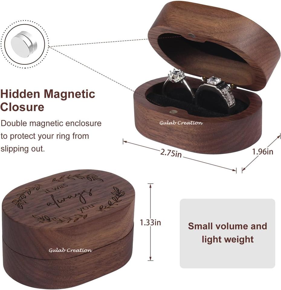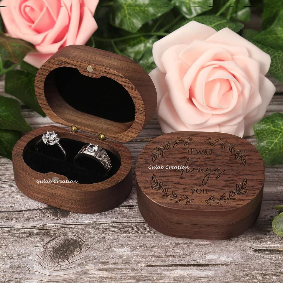 Nouvelle arrivée 2025 forme ovale en bois de manguier fiançailles boîte à bagues à fente unique petite bague plate mince étui pour proposition de mariage