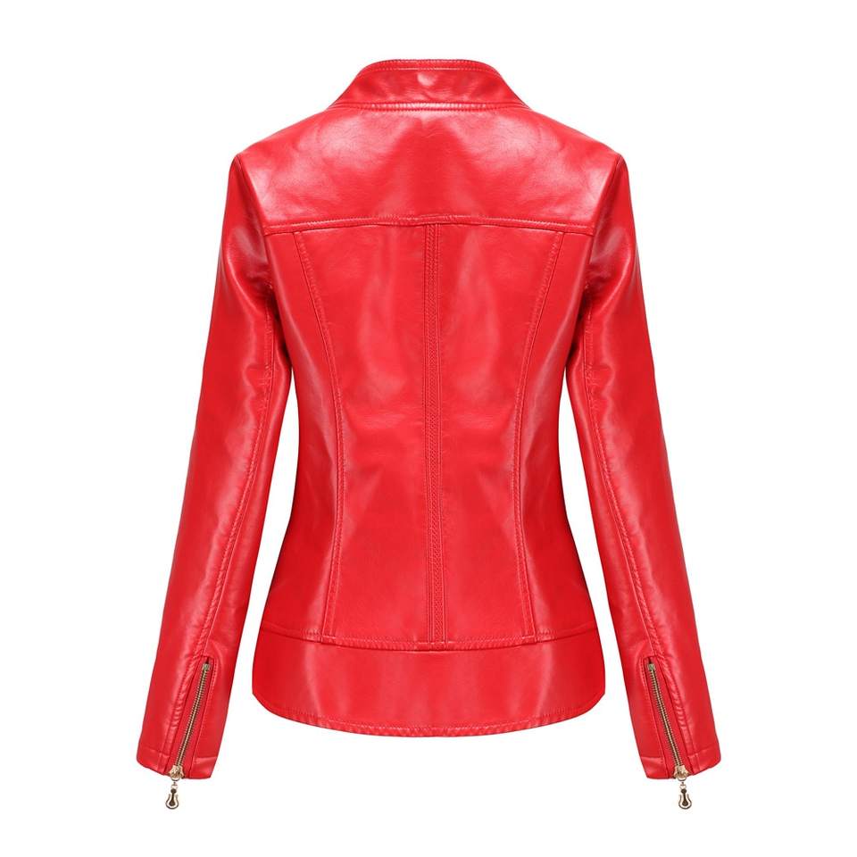 Nouvelle Arrivée 2026 – Blouson Moto Femme en Cuir PU Rouge Coupe Slim avec Broderies – Collection Printemps-Automne