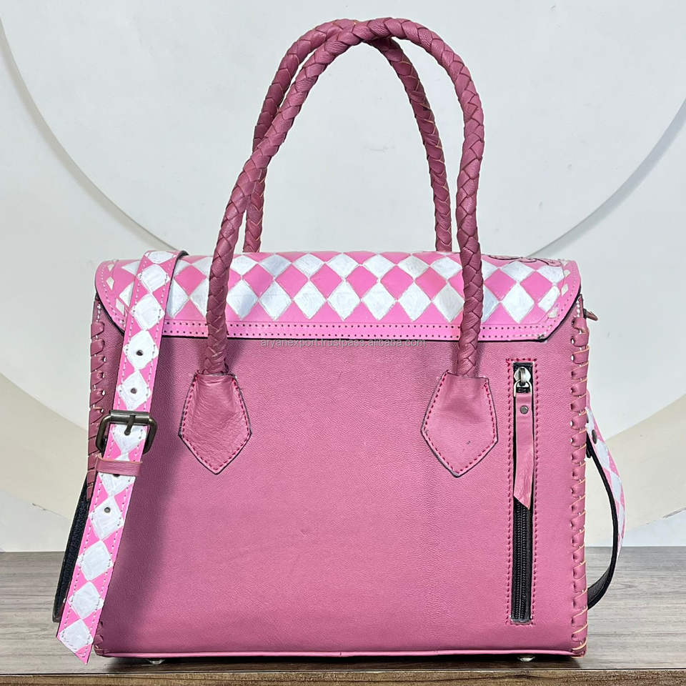 New Arrival 2026 Genuine Cow Leather Checkered Tote Bag Floral Tooling Stylish Women Shoulder & Crossbody Handbag For Daily Use