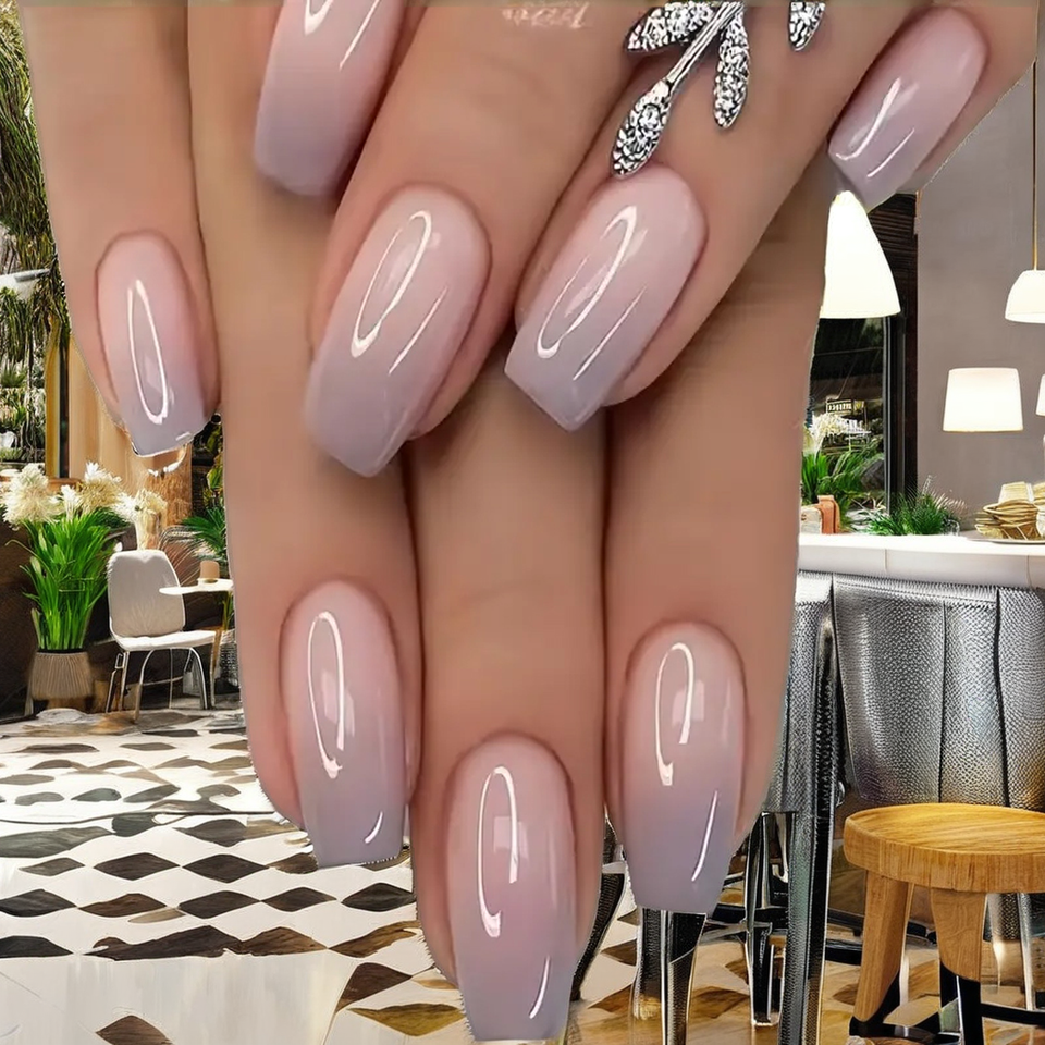 Nouveauté 24 pièces/ensemble ABS ongles artificiels minimaliste forme moyenne amande dégradé rose blanc presse ongles faux ongles