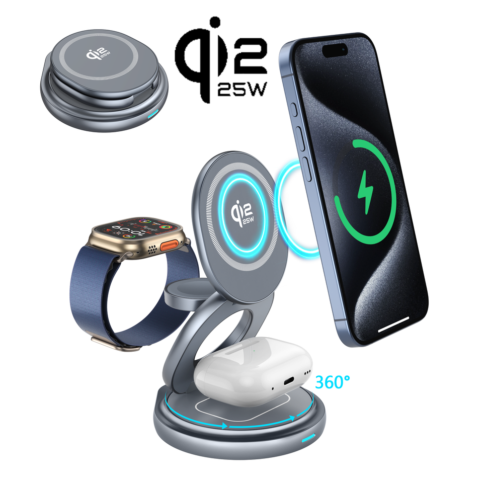 Nouveauté : Chargeur sans fil magnétique pliable 3 en 1 Qi2.2 25W en métal, station de charge rapide pliable en métal