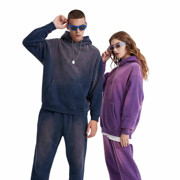 Nouvel arrivage 320GSM Survêtement deux pièces pur coton délavé à l'acide vêtements d'extérieur d'hiver à capuche personnalisables pour hommes Design solide personnalisé