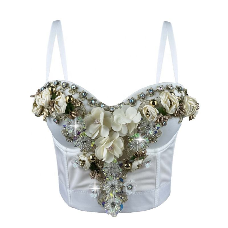 Nouvel Arrivage : Lingerie Sexy Luxueuse pour Femme avec Strass 3D en Forme de Fleur, Perles et Corset à Baleines Extérieures, Idéale pour les Soirées, En Stock