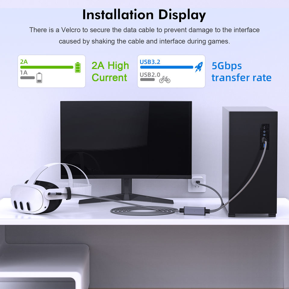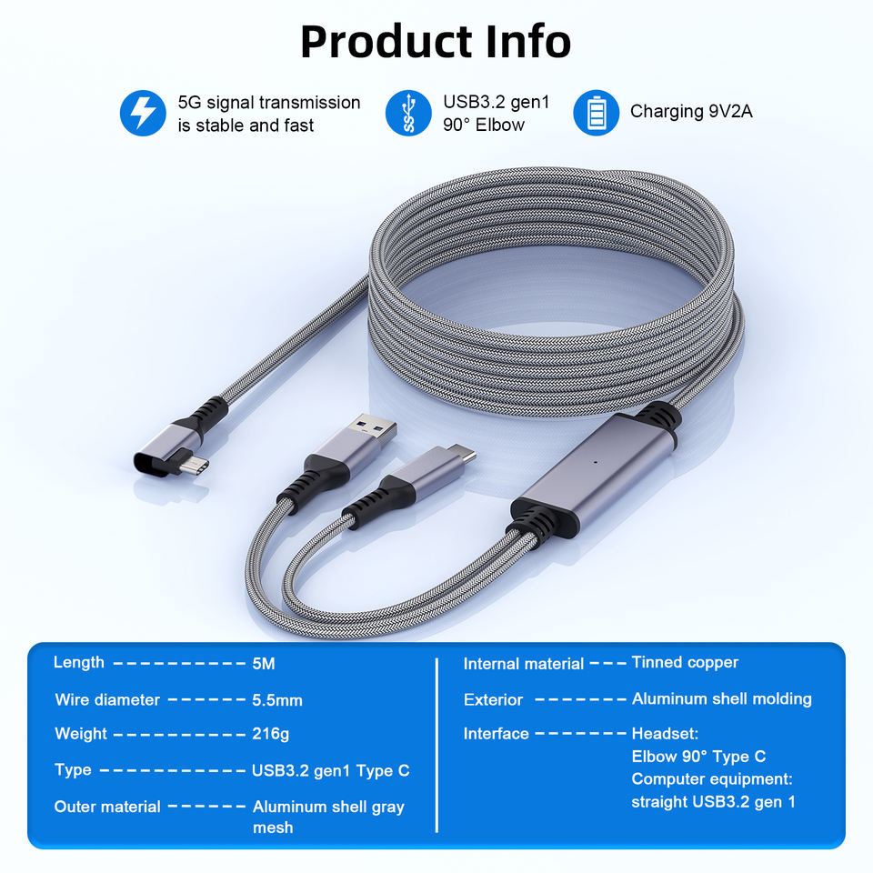 New Arrival 5M Cable with Ultra-Durable Power High Speed Data Transfer 5Gbps USB a to Type C VR Link Cable for Oculus Quest 3