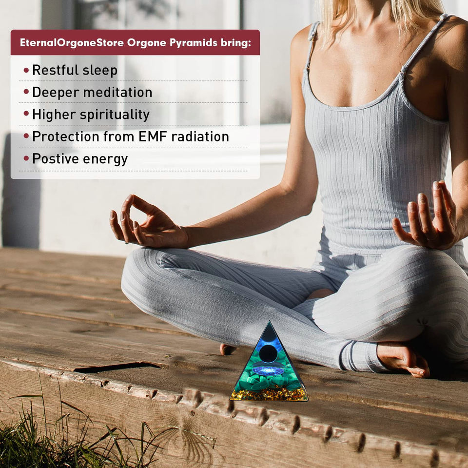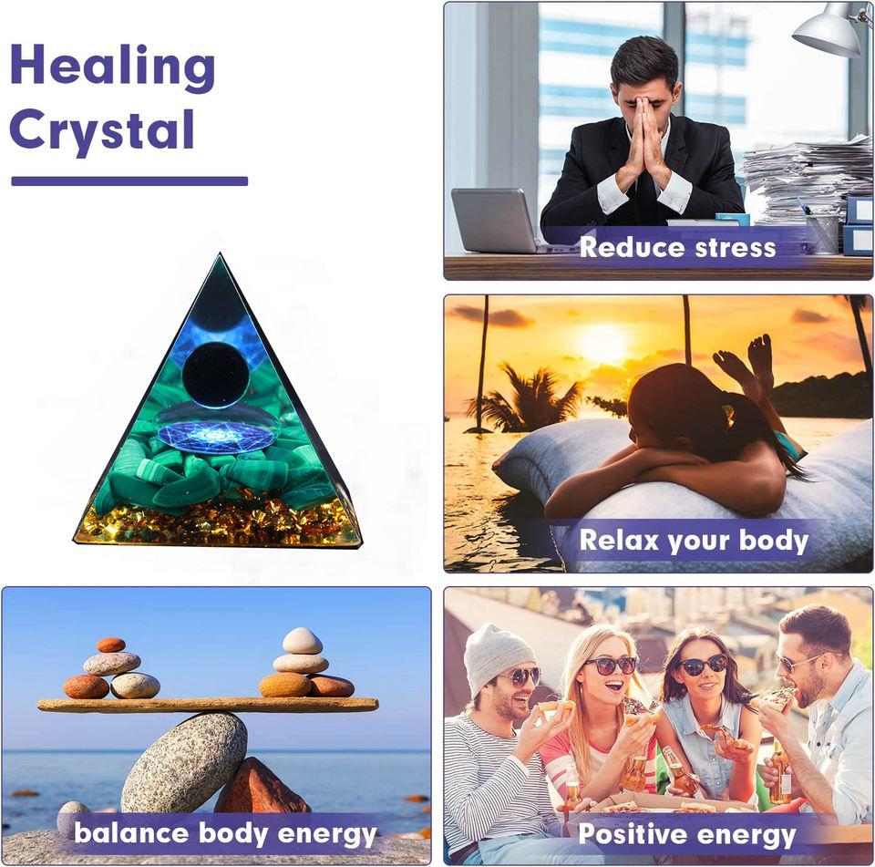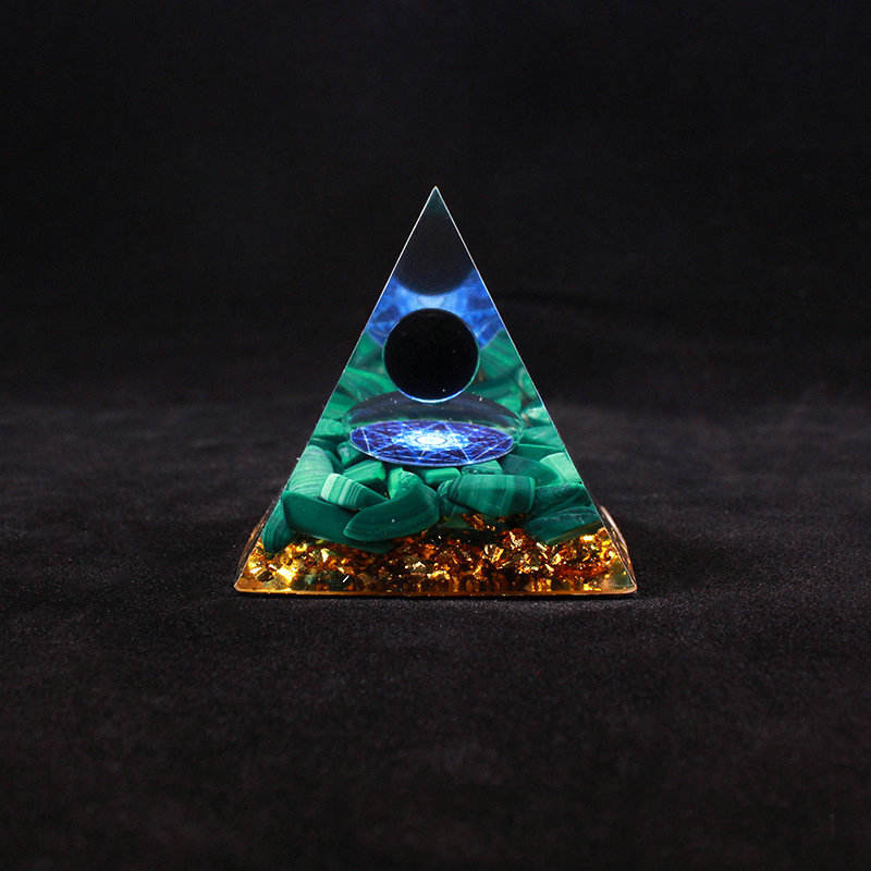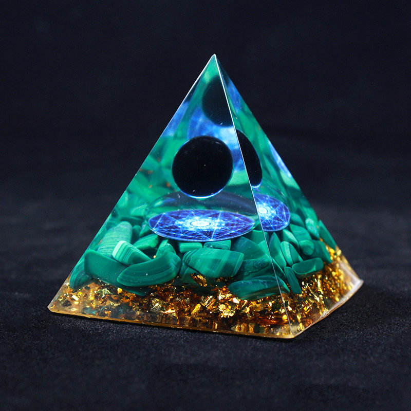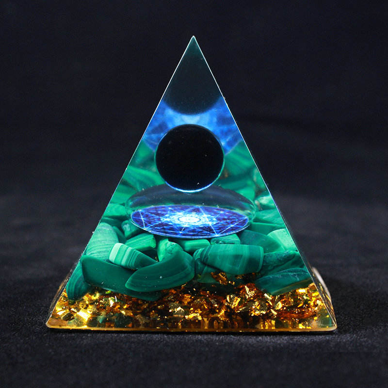 Nouveauté : pyramide d'orgonite en malachite et obsidienne de 6 cm, cercle magique pentagramme, sphère énergétique pour améliorer la chance professionnelle
