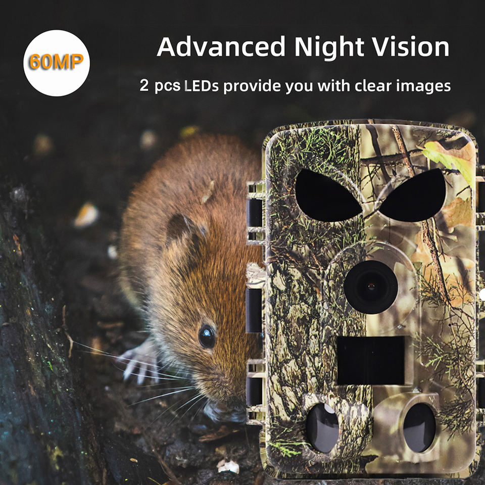 Nouvelle arrivée Caméra de chasse sur sentier Wifi 8K 60MP/48MP/42MP avec vision nocturne infrarouge invisible LED 850NM Caméra de chasse sur sentier