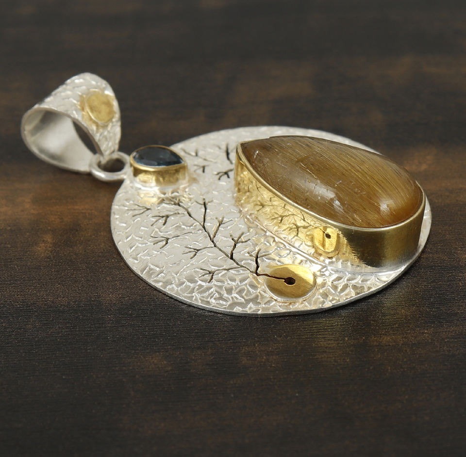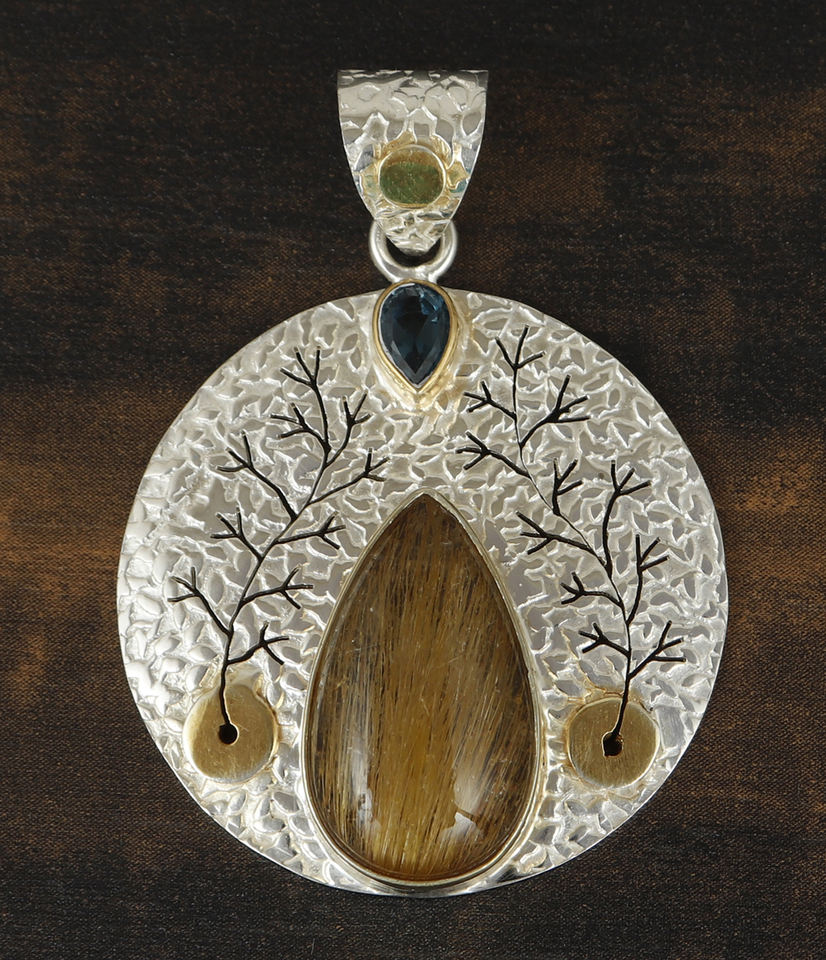Pendentif plaqué argent Vintage à la mode bijoux de mode de haute qualité nouveauté 925 pendentif en argent Sterling doré Rutail pierre précieuse
