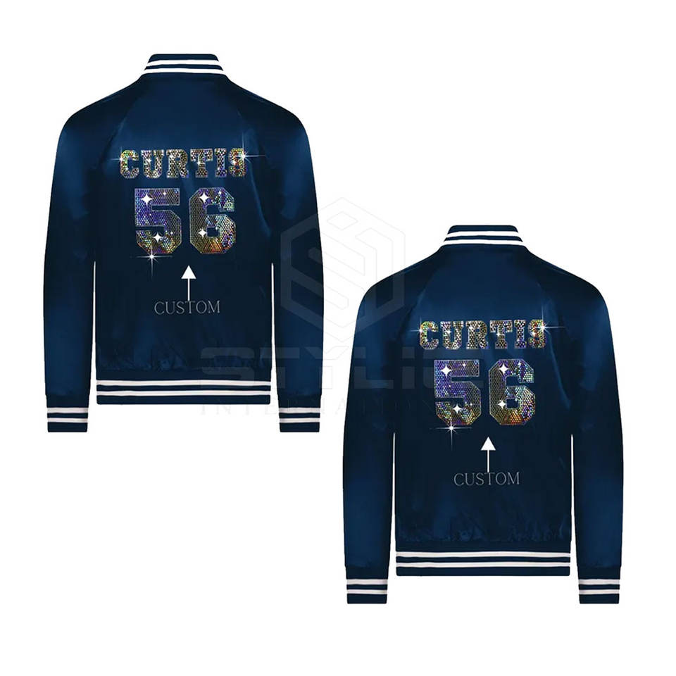 Product name:Rhinestone Satin Varisty Jacket