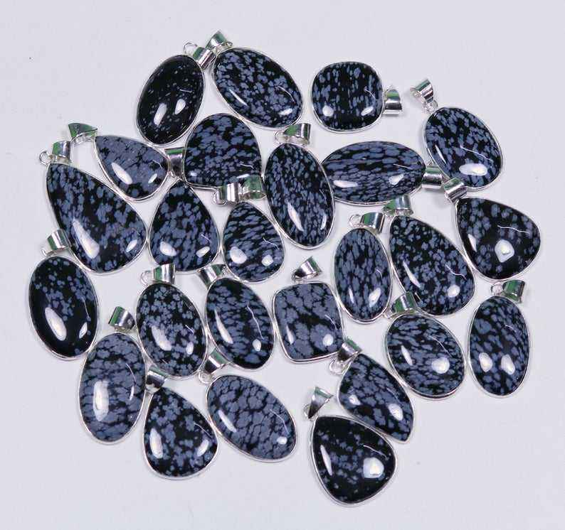 Nouveauté Incroyable Naturel Flocon De Neige Obsidienne De Haute Qualité En Vrac Gemme Argent Superposition Lunette Pendentif En Gros De Mode