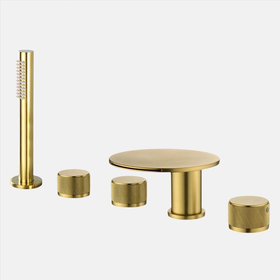 Nouvelle arrivée, robinet de baignoire en laiton brossé or, 5 trous, pour douche à main, vente en gros, eau chaude et froide